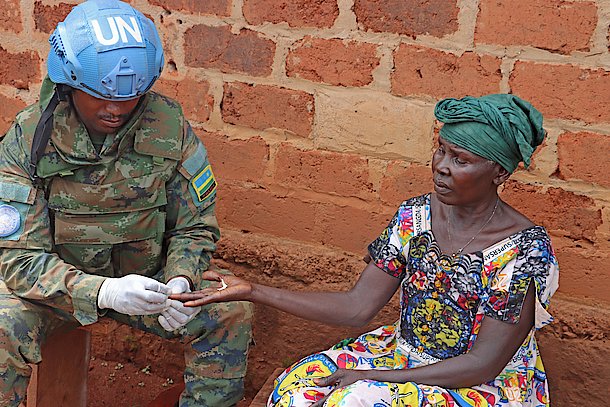 Rwandan Peacekeepers provide medical services to residents in Central African Republic